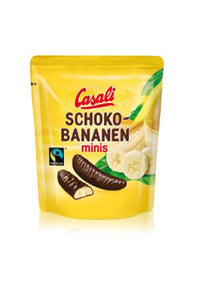 Gde god da se nalazite, Casali Mini coko bananice lako stanu u bilo koji džep. Voćni, nežni mousse od banane prekriven je hrskavom čokoladom. Svaka čokoladna mini bananica sadrži samo najbolje sastojke banane i čokolade. To se vidi u ukusu: 8% stvarnog sadržaja voća u punjenju čini naše čokoladne mini bananice vrlo posebnim doživljajem voćnog ukusa, koji je divno obogaćen kakaom koji smo sami pržili. I to bez ikakvih veštačkih boja ili konzervansa. Štaviše, naše čokoladne mini bananice pravno su klasifikovane kao bezglutenske („Uredba (EZ) br. 41/2009 sa sadržajem glutena manjim od 20 mg / kg). Bilo velike ili mini, uz naše originalne Casali čokoladne mini bananice ćete uvek maksimalno uživati.