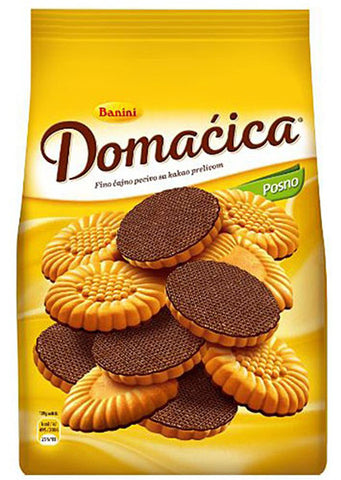 Ingredients: wheat flour, cocoa topping 29 % (sugar, partly hydrogenated vegetable fat (soybean), fat reduced cocoa powder, emulsifiers: soya lecithin and E476, flavour), sugar, vegetable fat (palm), glucose syrup, emulsifier: soya lecithin, raising agent (sodium hydrogencarbonate, ammonium hydrogencarbonate, disodium diphosphate), salt, flavour. May contain traces of eggs, nuts, milk, peanut, celery and sesame.