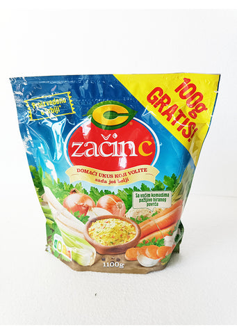 C proizvod Zacin C mixed seasoning 1000g+100g Mixed seasoning is a combination of dried vegetables, herbs, salt and other ingredients. Most of the spices are in powder form, followed by the forms of seeds, flakes, granules and leaves. We have chosen the perfect combination of vegetables (17%), spices (3.9%) and sea salt (58.5%) just for you, which will make your lunch an unforgettable family pleasure. The new Zacin C from the Garden is intended for young housewives who are dedicated to good food and want to experiment in the kitchen, as well as for those more experienced who want their dishes to be even tastier, with a guarantee of success brought by Zacin C. _______________________________________