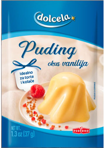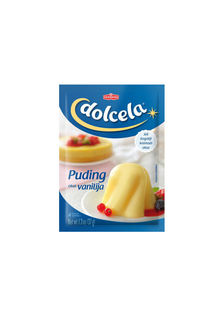 Instructions: Combine pudding mix with 3 tablespoons (40 g) sugar. Of ½ L cold milk, take 6 tablespoons and add to pudding and sugar mixture, mix well. Cook remaining milk, remove from heat and add in pudding mixture, and cook an additional 1 – 2 minutes, while stirring. Pour hot pudding into damp dishes and leave to cool. When done garnish with whipped cream "Dolcela", chocolate decorations, fresh or candied fruit, fruit syrup, juice or compote.