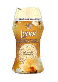 Lenor Zlatna vanilla perlice obezbeđuju do 12 nedelja pojačane svežine, tako da vaša odeca duže ostaje sveža, prožeta vašim omiljenim mirisom zlatne orhideje. To je zato što perle ulaze na početku pranja, omogucavajuci više mirisa da se polako unese u vašu tkaninu tokom pranja. Ovaj elegantni miris prožet je zavodljivom notom dragocene vanile koja umiruje emocije i smiruje duh. Pomešana sa mimozom, akordima ruže meda i kremastom breskvom, Lenor vas nagrađuje neverovatnim uživanjem i raskošnim iskustvom.