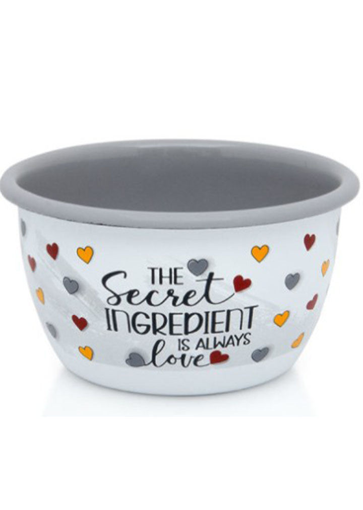 Diameter (cm): 12Volume (l): 0.7Height (mm): 75Material: EnamelColor (outside/inside): White/GreyCare: Hand and machine wash