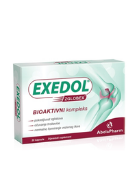 Exedol Zglobex Capsules are a dietary supplement based on natural ingredients: glucosamine, chondroitin, and SAMe (S-adenosyl methionine). They are recommended for maintaining normal joint function and for supporting the proper functioning and preservation of cartilage elasticity, as well as in cases of painful and inflammatory joint conditions, joint stiffness, and cartilage damage.