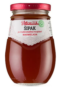 Ingredients: sugar, pulp: dogwood (30%) and apples (18%), gelling agent: pectin, acidity regulator: citric acid. Produced from 48g of fruit per 100g of finished product. Total sugar content/total sugars: 60g per 100g of finished product.