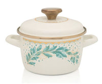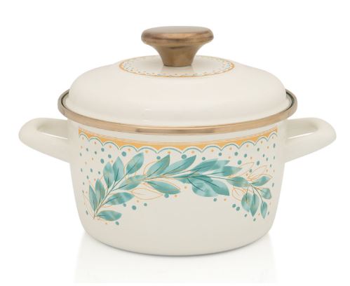 Diameter (cm): 16Volume (l): 1.9Height (mm): 100Material: Enamel on sheet steelWith lidColor (outside / inside): Cream / Mint greenMaintenance: Manual and machine washingEnamelled dishes are long-lasting, resistant to chemical influences and wear, easy to maintain. It can be used on all radiators, including induction.BODY BODY is made of steel sheet of the highest quality which enables fast and even heat distribution and saves energy.INTERNAL AND EXTERNAL ENAMEL is resistant to wear and scratches. It is extremely smooth, non-porous and prevents the retention of bacteria.HANDLES are ergonomically designed and solid constructions for safe handling of the container.
