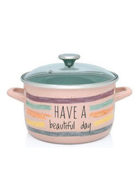 Metalac HAVE A BEAUTIFUL DAY Deep pot 20cm/4litDiameter (cm): 20Volume (l): 4Height (mm): 130Material: Enamel on steel sheetWith a glass coverColor (outside/inside): Pink/Mint greenCare: Hand and machine washEnameled dishes are long-lasting, resistant to chemical influences and wear, easy to maintain. It can be used on all heating elements, including induction.BODY OF THE POT is made of the highest quality sheet steel, which enables quick and even heat distribution and saves energy.INTERNAL AND EXTERNAL ENAMEL is resistant to wear and scratches. It is extremely smooth, non-porous and prevents the retention of bacteria.HANDLES are ergonomically designed and of solid construction for safe handling of the pan.