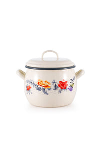 Prečnik (cm): 20Zapremina (l): 5Materijal: EmajlSa poklopcemBoja: BezOdržavanje: Ručno i mašinsko pranje