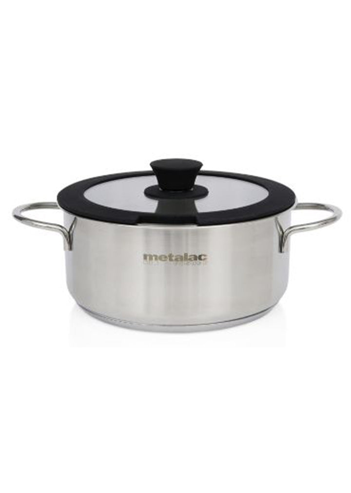 Diameter (cm): 24Volume (l): 4.8Material: Stainless steelWith a lidColor: InoxCare: Hand and machine washMetalac stainless steel cookware is made of premium quality stainless steel - stainless steel 18/10. The thermal characteristics of stainless steel cookware enable the accumulation of heat so that in the process of food preparation, important ingredients and heat-labile vitamins remain preserved.• Minimal use of water and fat in the food preparation process• Can be used on all heating elements, including induction• Preparing food at moderate temperatures• Saves energy and time in the food preparation processThe acutherm "sandwich" bottom consists of an aluminum core that quickly accumulates heat and evenly transfers it to the inner bottom and walls of the container, while the outer and inner sides are made of stainless steel that retains heat for a long time. Thanks to the characteristics of these two materials, it is possible to prepare food at low temperatures, thus saving energy.The handles are ergonomically designed and modernly designed, and their solid construction enables safe handling of the pan.Practical glass lid with openings for draining liquid and storing a kettle or ladle during cooking.Laser permanent printing of the literage on the inner wall of the container makes it easier to prepare food.