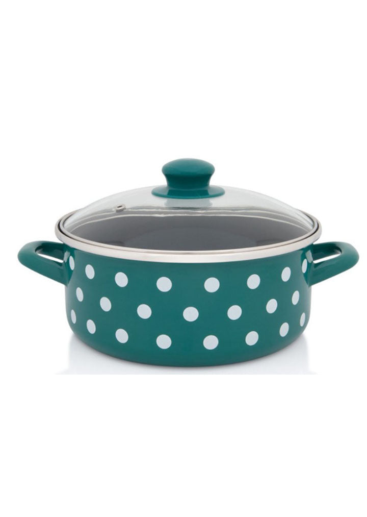 Metalac GREEN WHITE DOT shallow pot 20cm/2.75lit